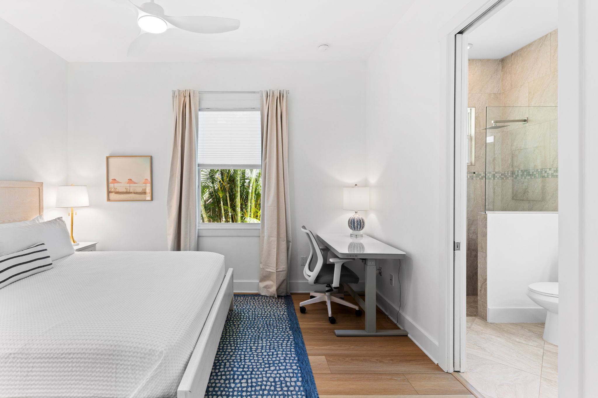 • 1 king guest bedroom w/ shared full bathroom