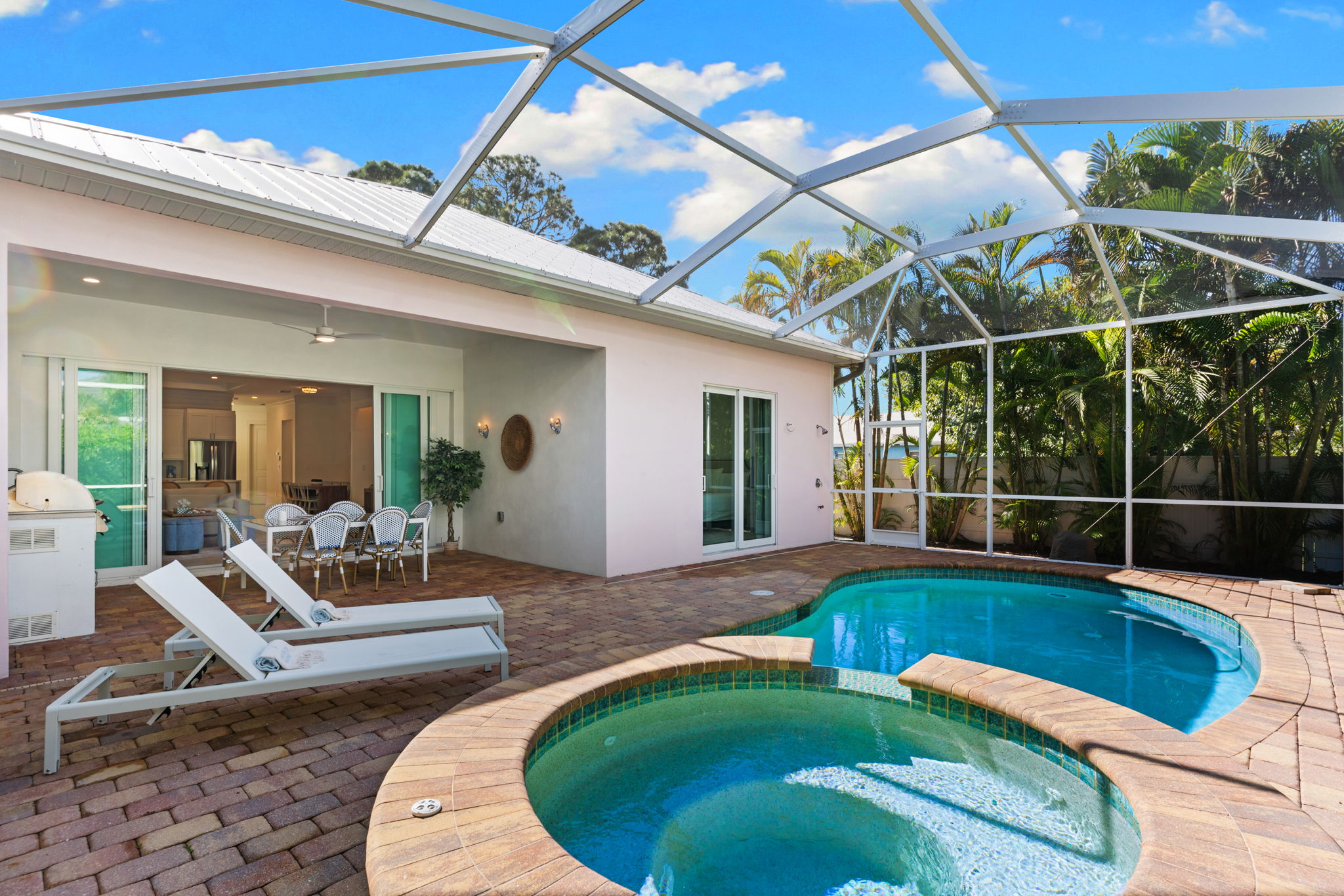 Step outside to your private backyard oasis, complete with a saltwater pool & spa and outdoor kitchen—perfect for relaxed family meals, evening gatherings, or soaking up the Florida sunshine.