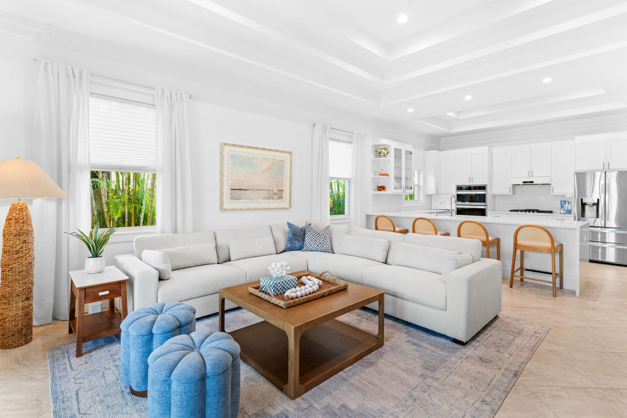 Experience refined coastal living in this beautifully designed Naples vacation home, ideal for families or groups seeking both comfort and style.